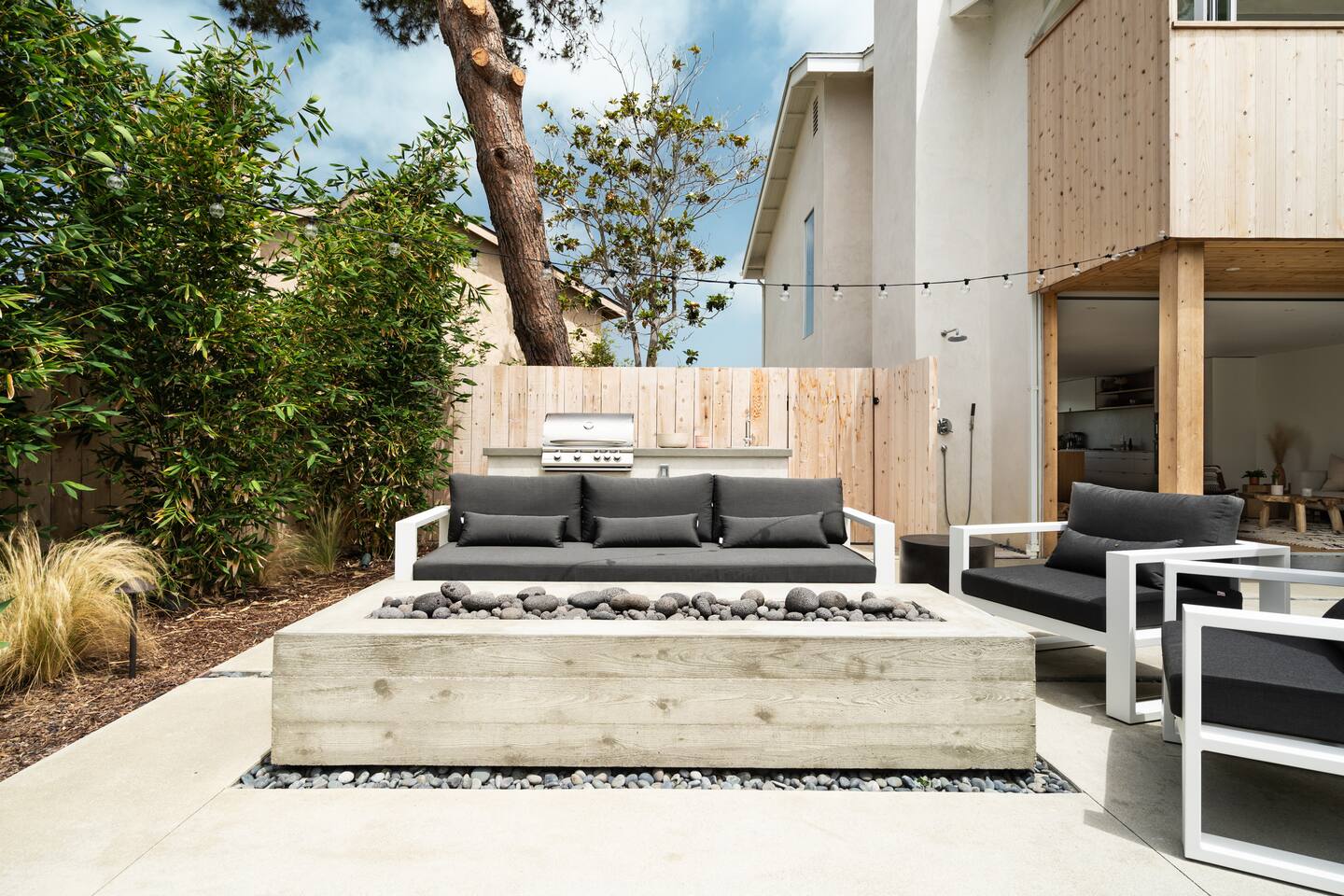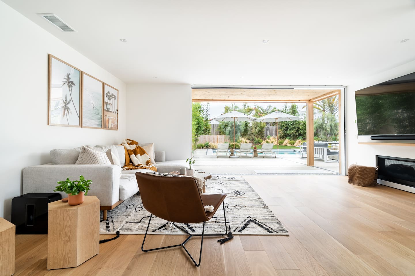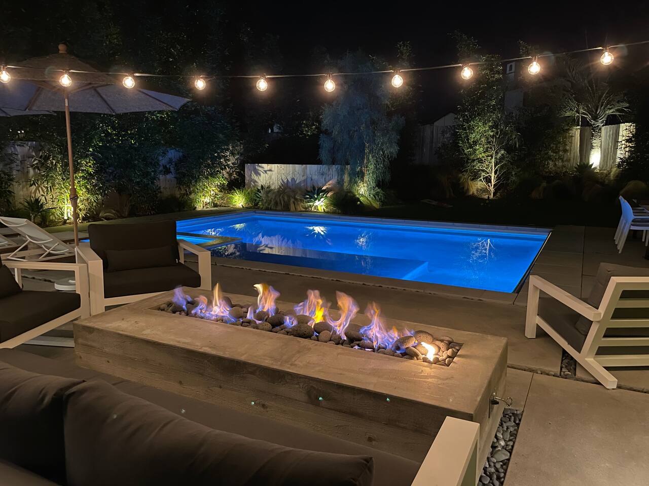 This is a peaceful neighborhood—perfect for families or a relaxing couples’ getaway. The backyard feels like your own private resort, featuring a large pool and spa surrounded by comfortable lounging areas. Tall bamboo lines the yard, creating a serene and very private setting. The home itself offers 3 bedrooms and 2.5 bathrooms. The primary bedroom features an Eastern king bed, the second bedroom has a California king, and the third bedroom includes a queen bunk with an XL twin on top—great for kids or additional guests. After a day at the nearby beach or relaxing by the pool, unwind in the living room with the cozy fireplace and a large 85" TV.
