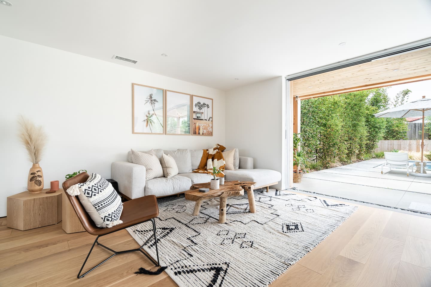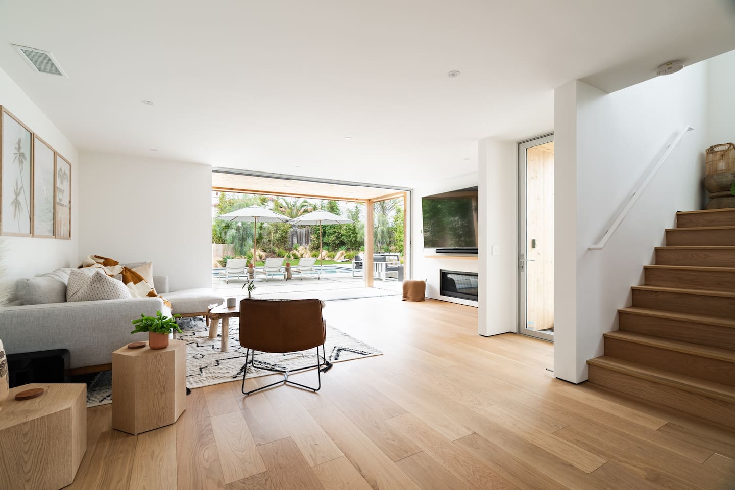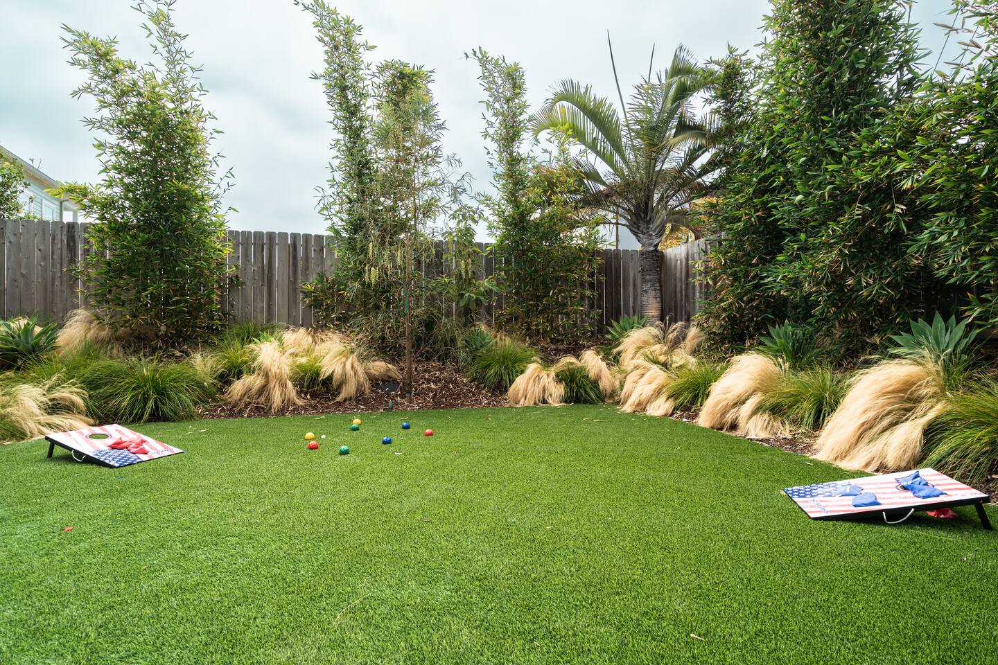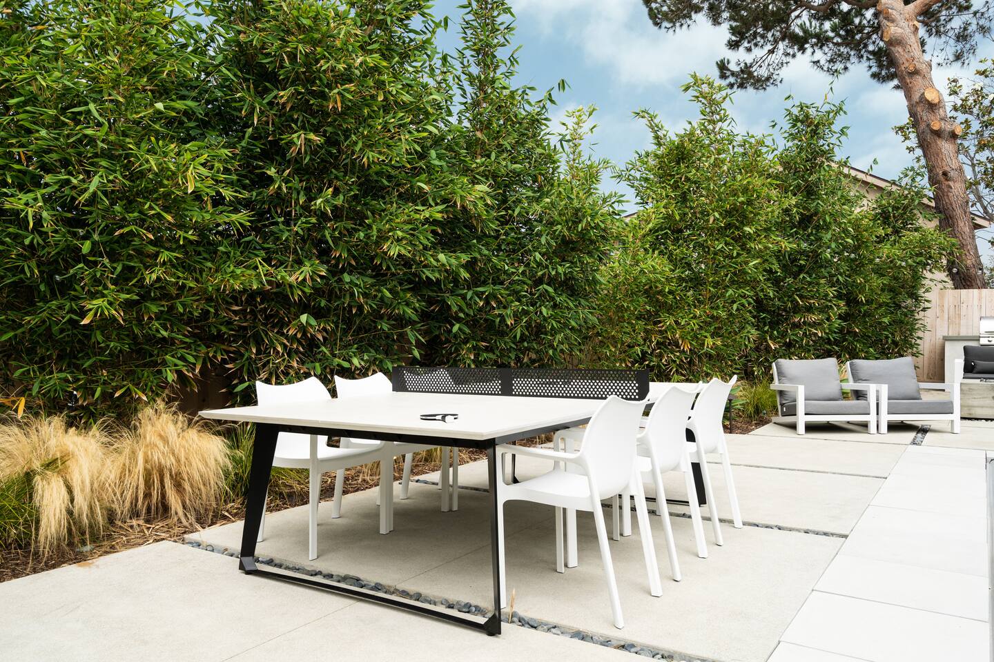 This is a peaceful neighborhood—perfect for families or a relaxing couples’ getaway. The backyard feels like your own private resort, featuring a large pool and spa surrounded by comfortable lounging areas. Tall bamboo lines the yard, creating a serene and very private setting. The home itself offers 3 bedrooms and 2.5 bathrooms. The primary bedroom features an Eastern king bed, the second bedroom has a California king, and the third bedroom includes a queen bunk with an XL twin on top—great for kids or additional guests. After a day at the nearby beach or relaxing by the pool, unwind in the living room with the cozy fireplace and a large 85" TV.
