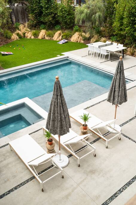 Must be 25 or older to rent. One adult 25 years of age or older must accompany minors staying in the home at all times. 1. All Guests (and any Visitors) must comply with all House Rules and any other instructions from the Property Manager during their stay. 2. Guests must notify the Property Manager of any disputes or complaints from neighbors as soon as reasonably practicable. 3. Guests are fully responsible for the safety and security of their children at all times, as well as any disturbance caused to other residents in the Neighborhood; 4. Guests and Visitors must keep noise to a minimum as not to disturb the occupants of neighboring properties – especially during nighttime hours (e.g. 11pm – 8am), and upon arrival and departure; 5. Excessive noise is prohibited at all times and may result in termination of the Airbnb rental agreement, eviction, loss of rental paid and extra charges which may be deducted from the Security Deposit; 6. Guests are allowed a maximum of 4 Visitors at any time during their stay. 7. Guests are responsible for ensuring maximum visitor numbers are not exceeded; and that. Visitors are complicit with these House Rules. 8. Any additional overnight Visitors must be approved in advance during the booking process and are subject to an additional fee as noted in the price. 9. Parties and large gatherings of any kind are strictly prohibited at the Airbnb Rental; and Any small gathering must comply with other rules set regarding Noise, the Neighborhood and Visitor numbers. 10. Guests and any Visitors are to comply with parking regulations and other requirements set out below and show consideration to neighbors and other vehicles; and Parking arrangements at the Airbnb Rental are as follows: Parking in the two car enclosed garage 11. Guests and their Visitors are to dispose of Garbage and Recycling in accordance with the usual practice at the Airbnb Rental (as set out below) in the allocated trash cans, and excess rubbish must not be left in public or common areas; and Garbage and Recycling arrangements at the Airbnb Rental are as follows: Please place garbage and recycling in the respective bins in the outdoor enclosure next to the driveway. 12. Any time Guests leave the Airbnb Rental, it is their responsibility to ensure all windows and doors are closed/locked to maintain security and prevent rain and water damage. 13. Guests must switch off lights, air conditioning, fans, electronics such as televisions when not in use to promote energy saving. It is not permitted to leave the air conditioning on when Guests are absent from the Airbnb. 14. The Hot tub/ Swimming pool is only to be used between the hours of 7 am and 11 pm. For safety reasons, it is not permitted to use any glassware in or around the pool area. Failure to comply with this rule will result in a fine deducted from the security deposit 15. Guests must supervise any babies and children at all times when using the Outdoor Yard, Pool, Deck and Balcony areas. Specific Deck and Balcony rules are as follows: No climbing or sitting on the deck handrail at any time. 16. Smoking is not permitted inside or on the grounds of the property. 17. Pets are not permitted at the property. 18. Fire pit and bbq are to be turned off immediately after use. Any damage to fire pit or bbq or their surrounds from improper or neglectful use is the responsibility of the renter(s). 19. All Damages and Breakages must be reported to the Property Manager as soon as reasonably practicable. Failure to report them will likely result in a penalty deduction from the security deposit. And; To avoid Damages and Breakages, no furniture is to be moved from one room to another without prior agreement. Also; No bathroom towels are to be removed from the property (i.e. for beach use). Separate beach towels are provided for this purpose. 20. Rules for key handover, security, cleaning, garbage, etc. are as follows: All doors are to be locked (including the garage) and the key is to be left inside the lockbox and the lockbox closed and locked. 21. In the event of an emergency relating to the Airbnb, your emergency contact is: Pam Law - 760-420-3758 22. Breach of any of these House Rules is a breach of the Terms and Conditions of occupancy as per the Rental Agreement. The Owner and Manager reserve the right to terminate permission to occupy and to evict from the Airbnb Rental, any Guests or Visitors who refuse to follow these House Rules or who cause a nuisance to neighbors or other residents of the community. 26. POOL POLICY – Diving or jumping into any pool or hot tub may result in head, neck, or spinal injuries. Renters are to familiarize themselves with the steps, baja shelf, and benches beneath the water surface prior to using the pool. You accept all risk of the pool or hot tub and specifically agree that no minor will swim unaccompanied by an adult. Pools and hot tubs have electrical/mechanical components. These components can sometimes malfunction. Management company, property owner and its vendors cannot be held responsible for any malfunctioning pool or hot tub. Please inform us as soon as possible if your pool or hot tub is not working properly. We will take all reasonable steps to rectify any problems with malfunctioning equipment as quickly as possible, however, no compensation or refund will be given for a malfunctioning pool or pool heater.