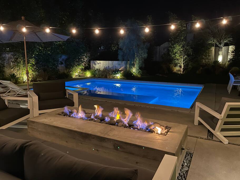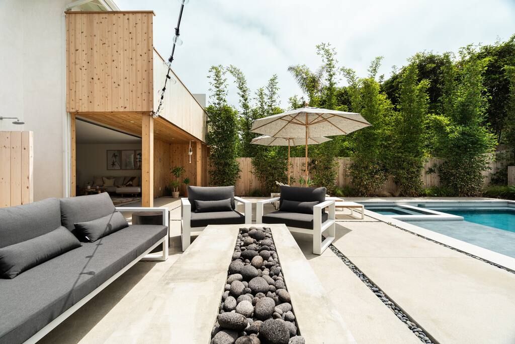 Whether you lounge on the baja shelf, nap on the pool deck, or warm your feet at the fire pit, this stylish outdoor space is your own private resort.